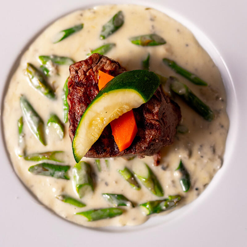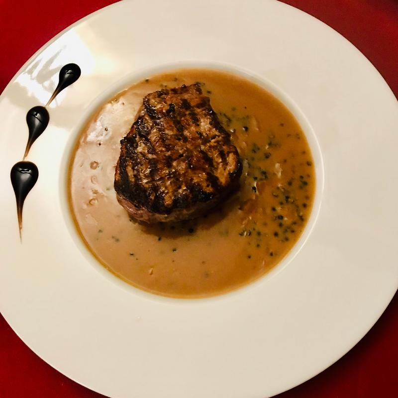 Petit filet mignon and Lobster Tail in a cognac demi-glace sauce OR